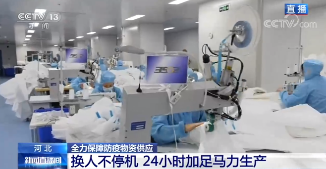 央视网消息:河北疫情防控措施不断地升级,而当地防疫物资生产也是开足了马力。总台央视记者古峻岭此刻就在一家当地专门生产防疫物资的企业生产现场。