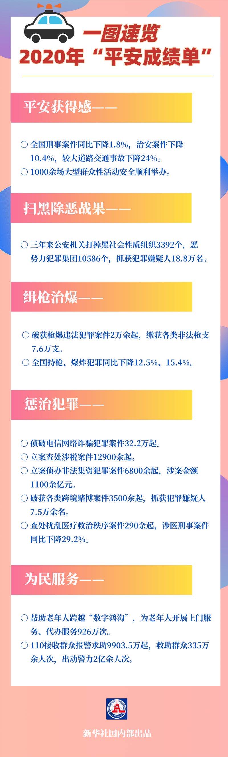 2020年,是新中国历史上极不平凡的一年。全国公安机关和广大公安民警全力以赴投入疫情防控和维护安全稳定工作,戳图速览这份充满温度和力量的2020年“平安成绩单”。