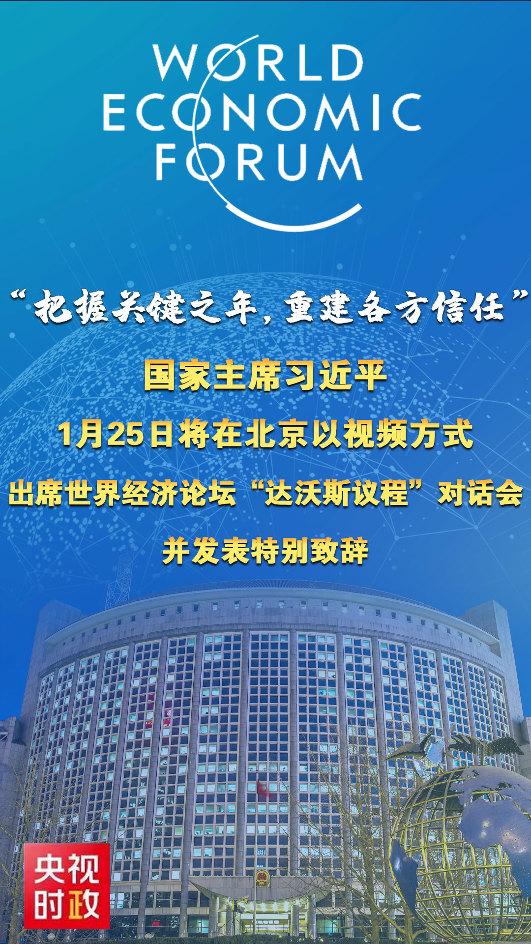 习近平将在北京以视频方式出席世界经济论坛“达沃斯议程”对话会并发表特别致辞。