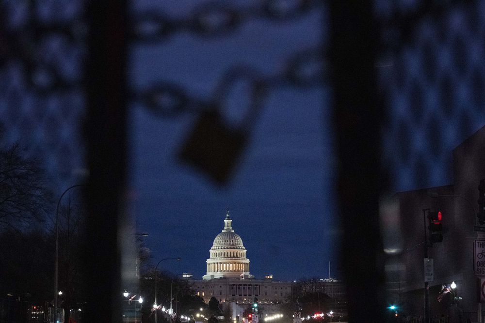 1月17日傍晚,在美国华盛顿,用于举行就职典礼的国会大厦及周边区域被隔离围栏封锁。(新华社记者刘杰摄)