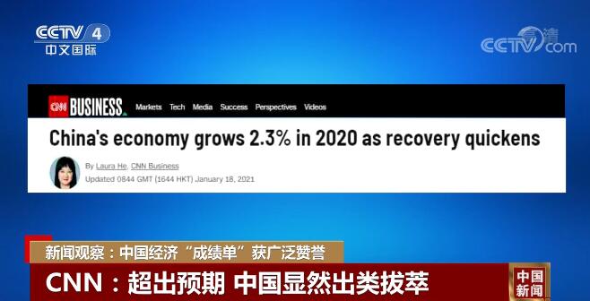 央视网消息:18日,国家统计局公布了2020年的宏观经济“成绩单”,立即引来众多外媒关注。全年2.3%的GDP增长率是中国改革开放以来的最低水平,但这一数字所反映的内涵远比其表面要丰富而亮眼许多。从一季度同比下降6.8%,到四季度实现6.5%的增长,中国经济过去一年的V型反弹来之不易,也令世界印象深刻。