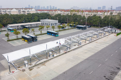 (资料图片,建设中的苏州市莲花停保场充电站,新华社发)