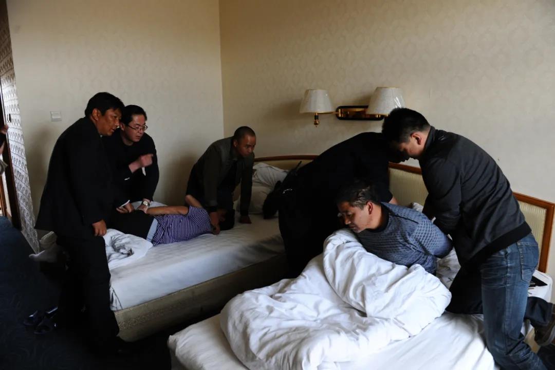 ▲2013年刘春龙(右三)与同事一起在青海省海西蒙古族藏族自治州抓捕文物盗窃嫌疑人。