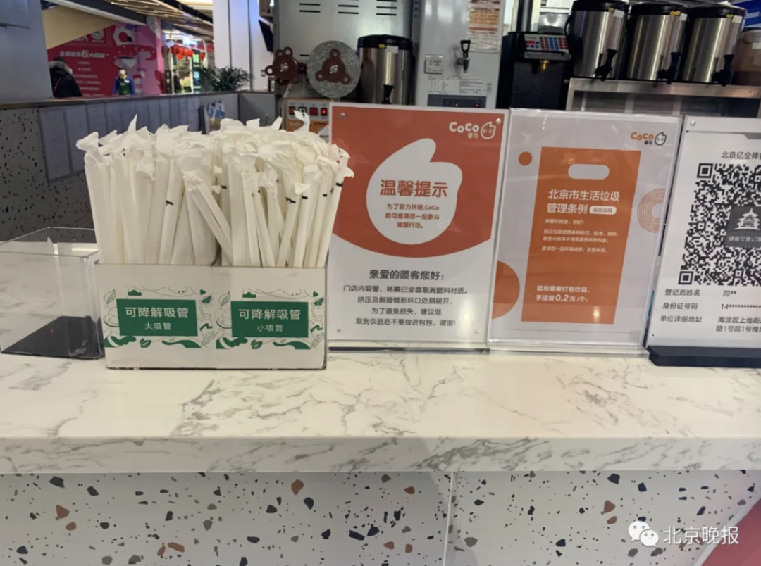 目前已有多家品牌饮品店更换了使用感更好、降解能力更强的聚乳酸(PLA)可降解吸管,或者提供两种吸管供顾客自主选择,并在纸吸管选项上写明“口感略有影响”的提示。顾客孙女士说:“我一般只会选择提供PLA吸管的店,这样才跟原来的口感差不多。”