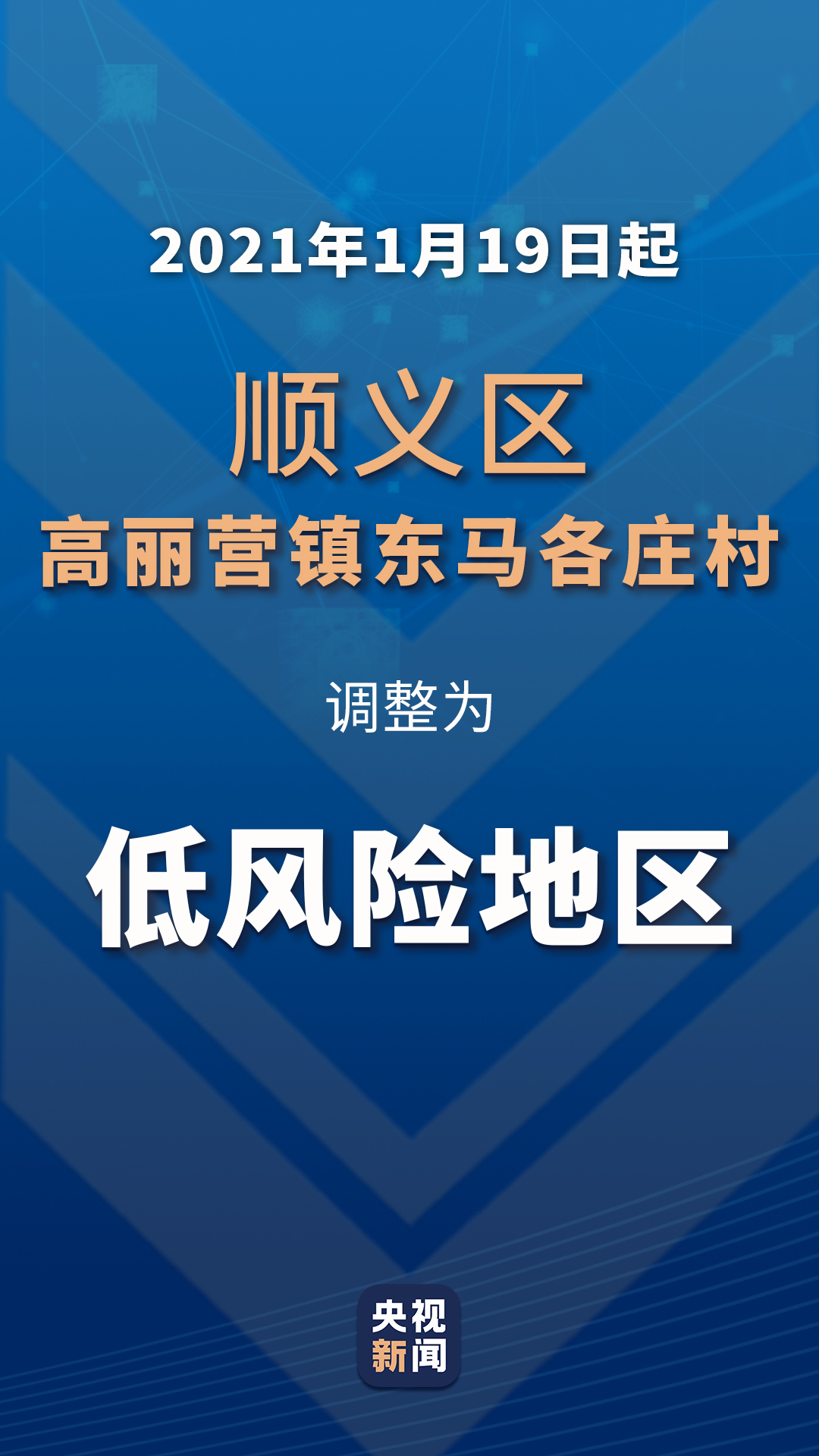 北京市疾病预防控制中心副主任庞星火介绍,自1月19日起,将顺义区高丽营镇东马各庄村调整为低风险地区。