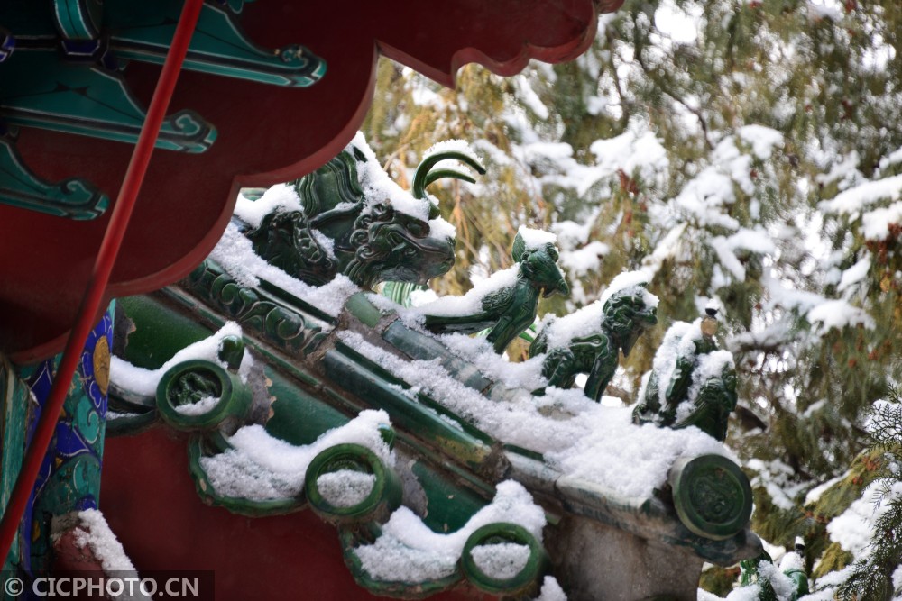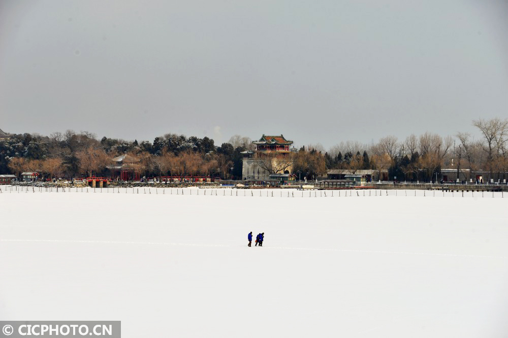 ↑2021年1月19日,北京颐和园万寿山被覆盖在银装素裹的白雪世界里。CICPHOTO/樊甲山 摄