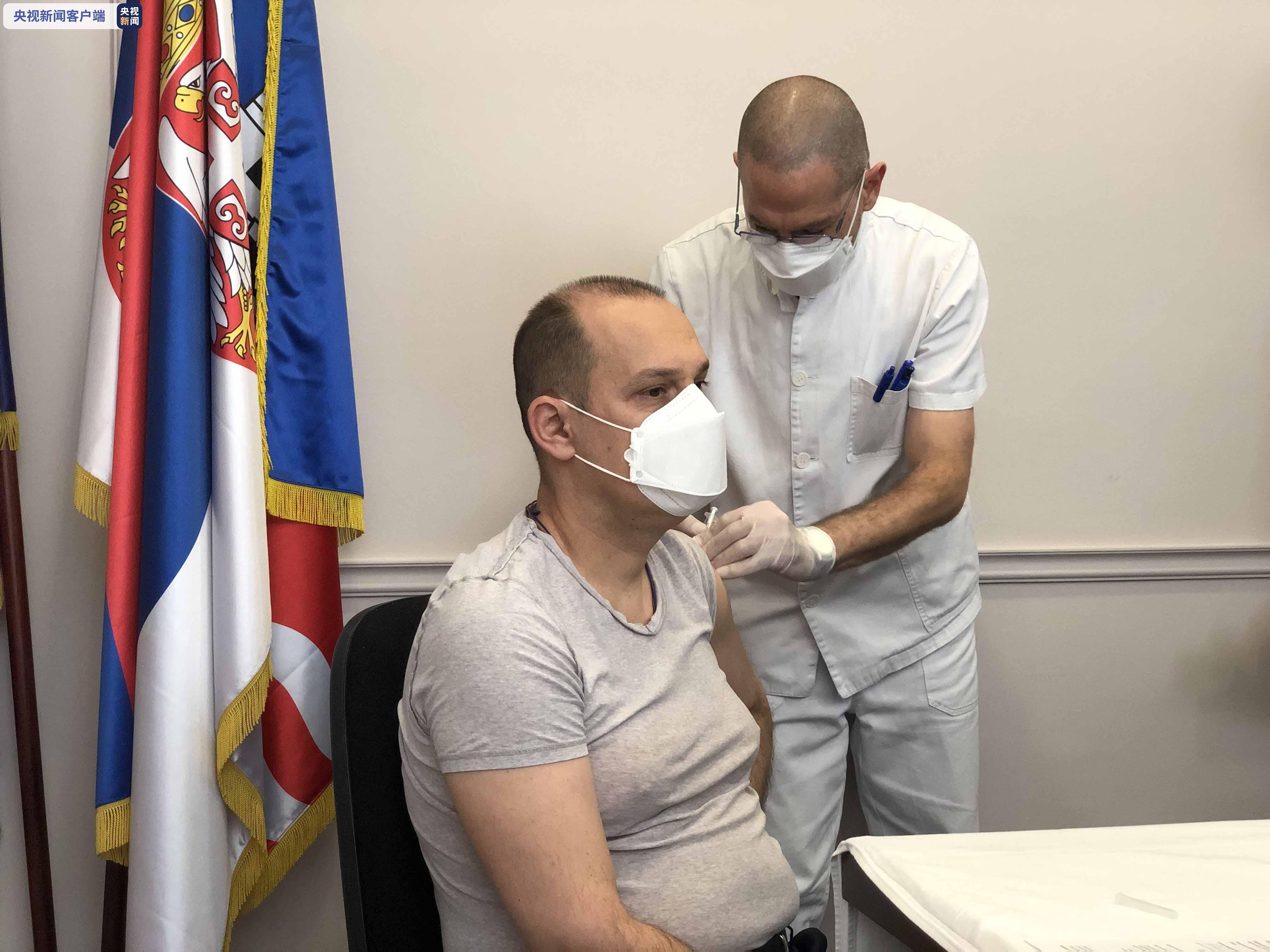 当地时间1月19日11时左右,塞尔维亚卫生部长隆查尔在塞尔维亚国家实验室接种中国国药疫苗,他是塞尔维亚接种中国疫苗的第一人。