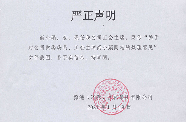 济源网1月19日消息,豫港焦化就网传图片发表严正声明: