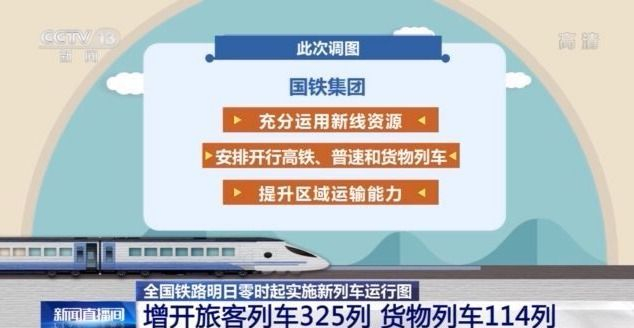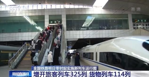 从1月20日零时起,全国铁路将实施新的列车运行图,增开旅客列车325列,主要货运通道增开货物列车114列。