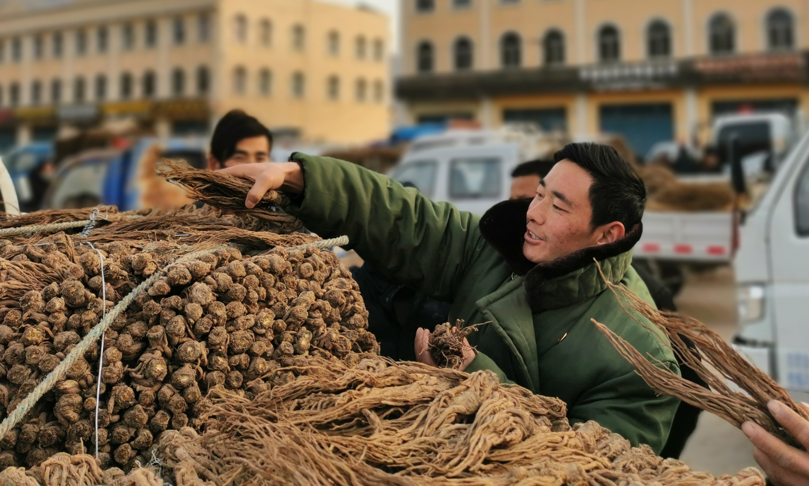 岷县曾是国家52个挂牌督战贫困县之一。这里海拔高气候阴凉,当地种植当归、黄芪、党参等中药材,是西北中药材主产区之一,尤以“岷归”驰名中外,被称为“千年药乡”。春节临近,药农们争先恐后拉着晾晒好的药材赶到当归城,准备开市后卖个好价钱。