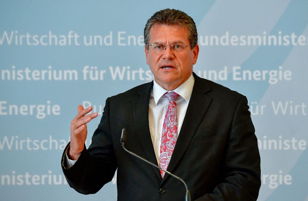 2018年7月17日,在德国柏林,欧盟委员会副主席马罗什·谢夫乔维奇出席新闻发布会。(新华社/法新)
