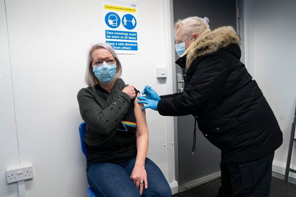 1月7日,在英国大曼彻斯特郡海德,一名女子接种新冠疫苗。(新华社发 乔恩·休珀摄)