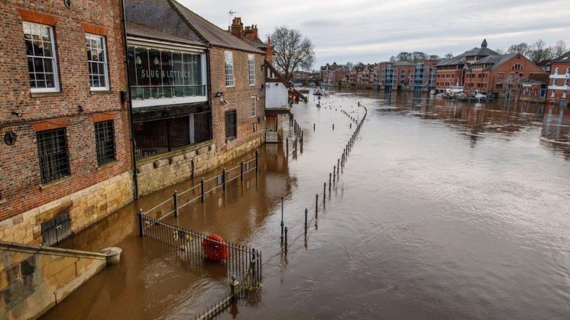 △风暴到达前,英国部分河流水位高涨