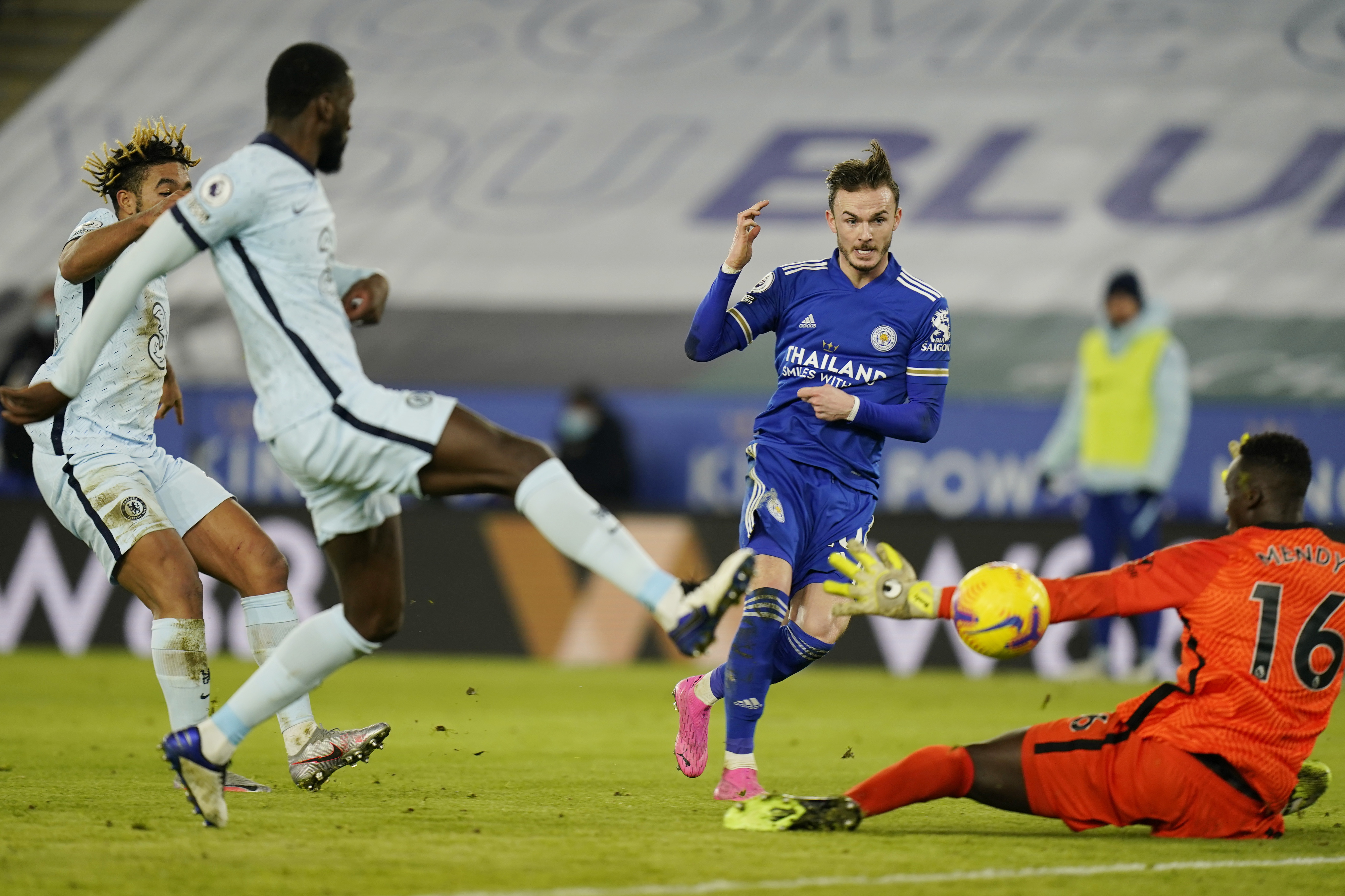 当日比赛开场仅6分钟,莱斯特城即取得领先。恩迪迪禁区外的大力远射击中门柱后弹入网内。此后,主裁本打算判给切尔西点球,但视频助理裁判(VAR)认定埃文斯对普利西奇的犯规发生在禁区外,切尔西最终没能得到这次机会。