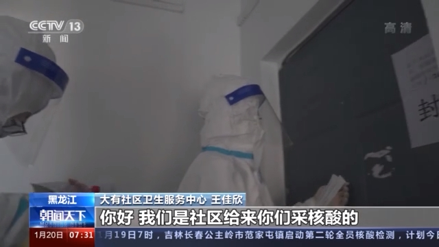 1月12日绥化市北林区大有社区卫生服务中心核酸采样员下社区为居民做核酸采样。