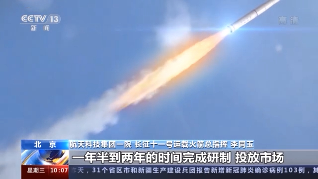 航天科技集团一院 长征十一号运载火箭总指挥 李同玉:今年根据用户的需求,根据协调国内外落区的安全性的要求,我们有一次是陆上发射,其他计划我们可能会要3至4次都是进行海上发射。