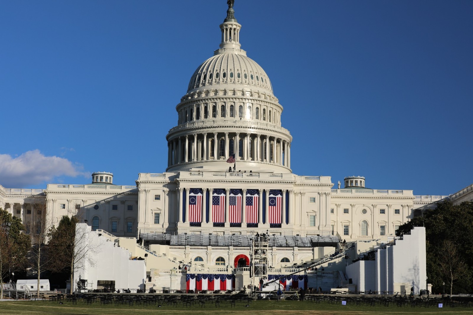 位于国会大厦西侧外的总统就职典礼平台。20日,当选总统和副总统将在这里宣誓就职。(来源:人民日报把客户端 张梦旭 摄)