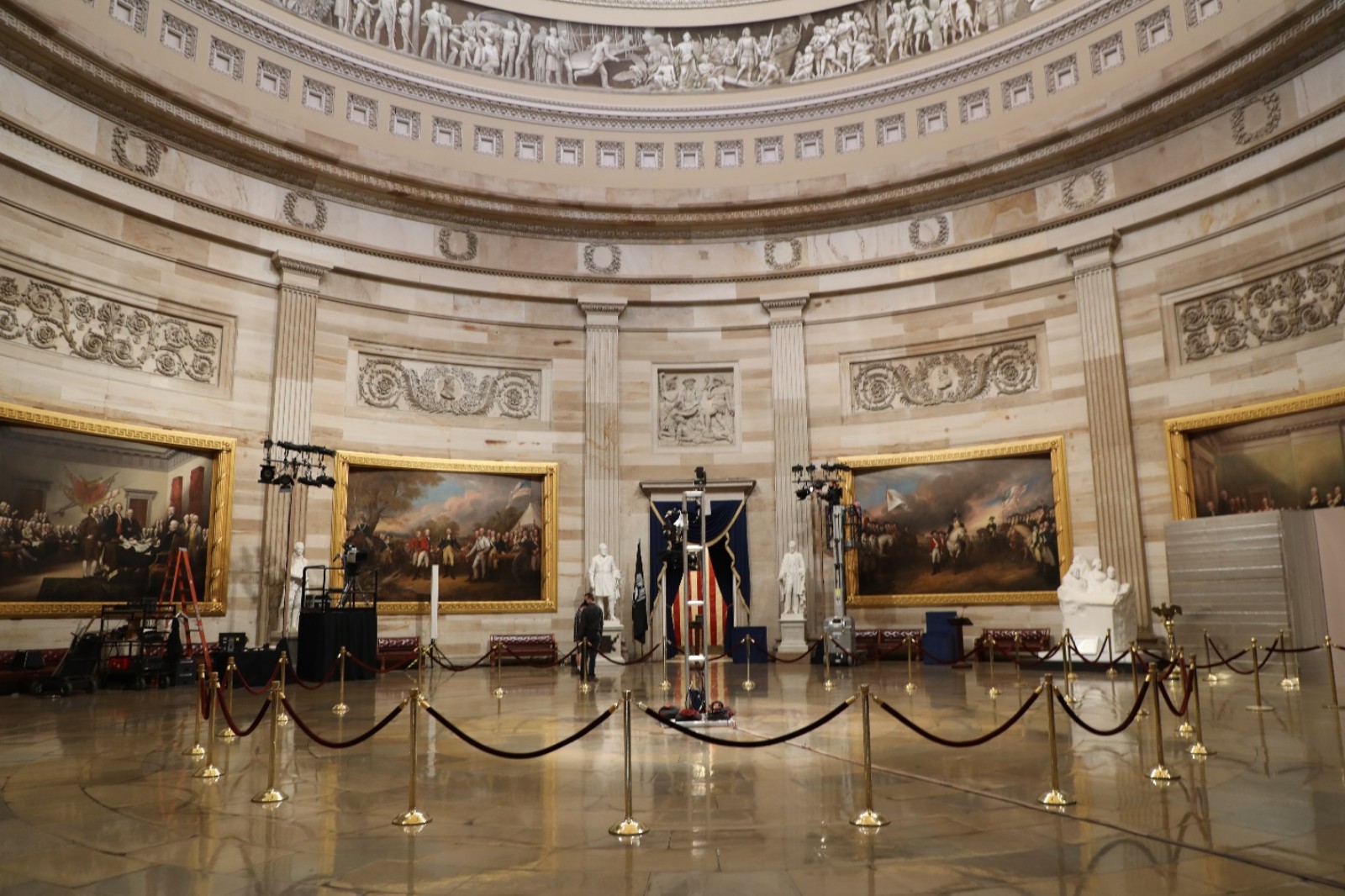 1月19日下午,美国国会大厦内部,工作人员正在为总统就职典礼进行最后的准备工作。(来源:人民日报把客户端 张梦旭 摄)