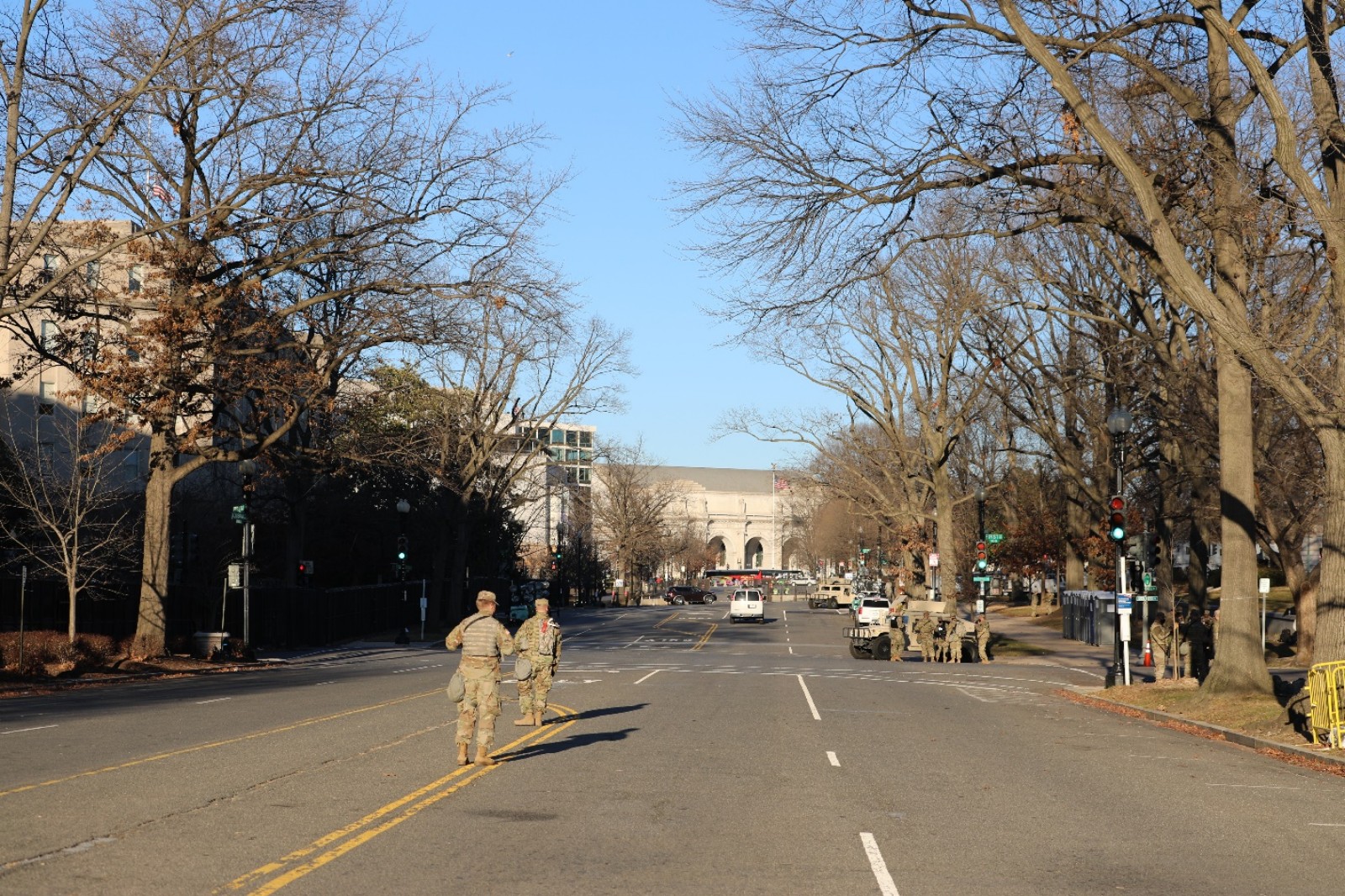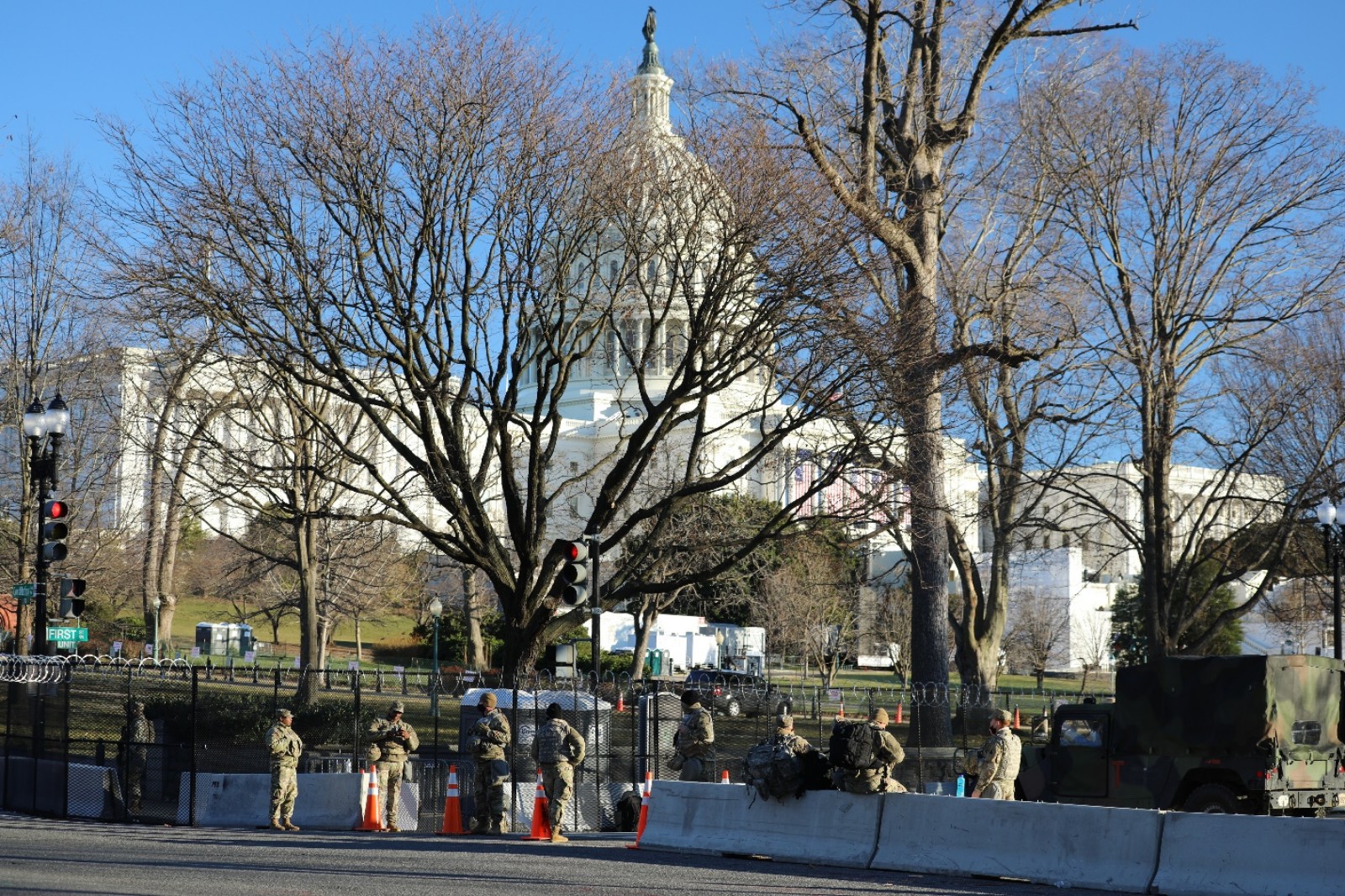 1月19日下午,通往国会大厦区域的道路已经完全封闭。(来源:人民日报把客户端 张梦旭 摄)