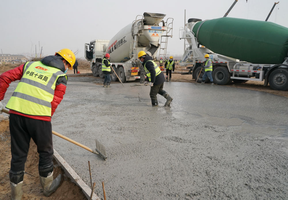 ▲1月16日,工人在石家庄黄庄公寓隔离场所项目工地施工。