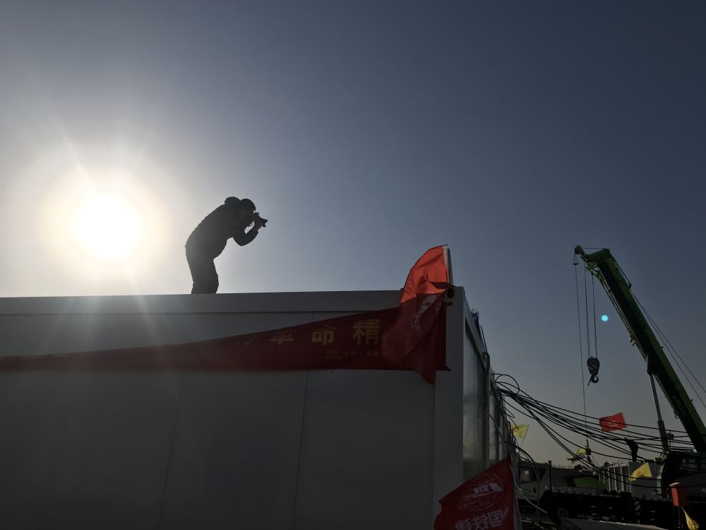 为了更加生动地展现建设者们彻夜奋战抢工期的画面,我和同事相互配合,用图片和视频互补的镜头语言来宣传他们不分昼夜奋战的场景。