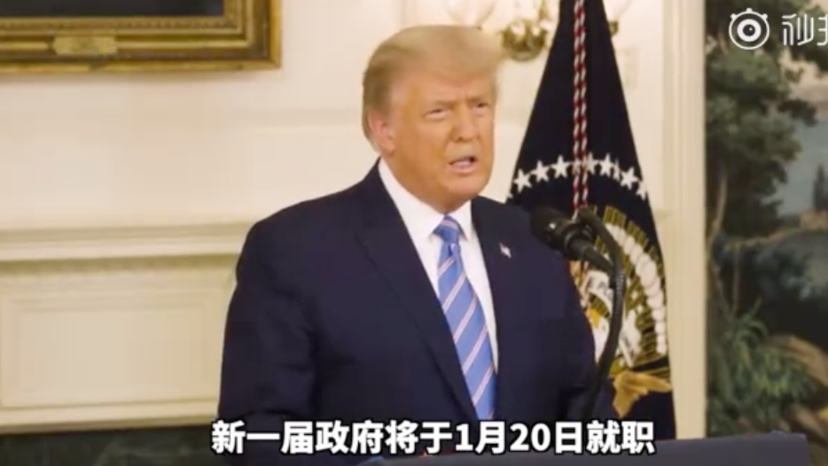 随后,特朗普在其推特账号恢复后发表了一段视频演说,他表示“新政府将从1月20日就职,我现在的重点是确保权力平稳、有序和无缝地过渡。这一刻需要治愈与和解”。