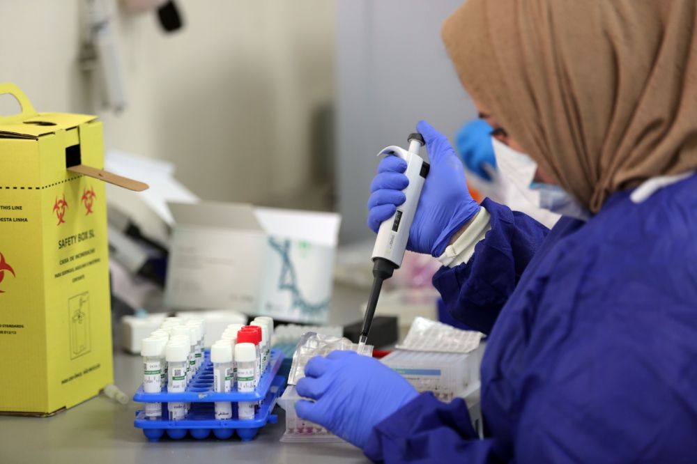 2020年11月8日,在伊拉克巴格达,工作人员在中国援建伊拉克抗击新冠疫情的核酸检测实验室里检测样本。(新华社发)