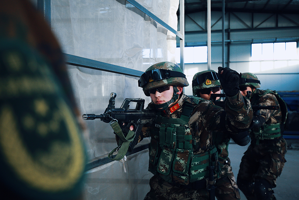 突击小组进行战术手语训练。王治国 摄