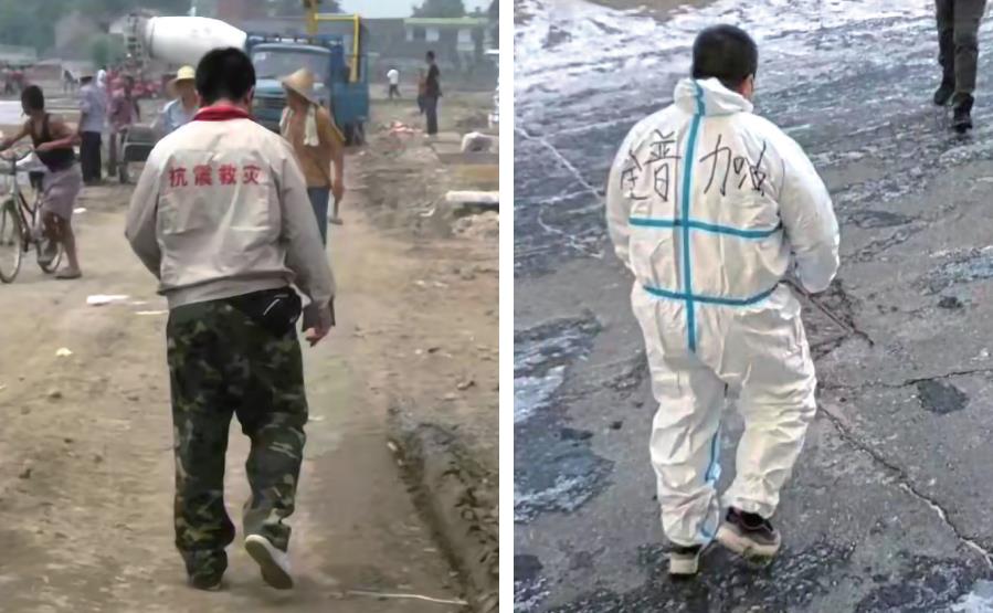 近日,一组横跨13年的同款背影照片在网络上刷屏。一张拍摄于2008年汶川地震灾区,背后写着“抗震救灾”;一张拍摄于2021年大连战“疫”一线,背后写着“金普加油”。这两张照片的主人公是同一个人,辽宁大连金普新区交通运输局工作人员安磊。
