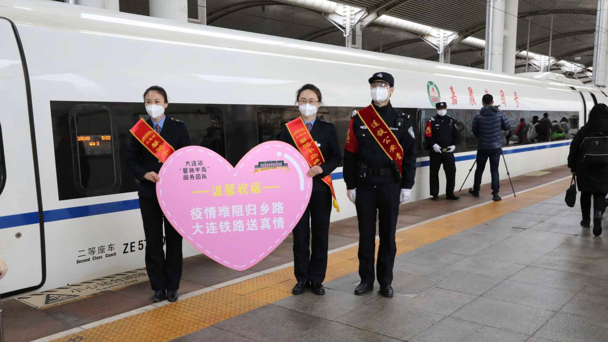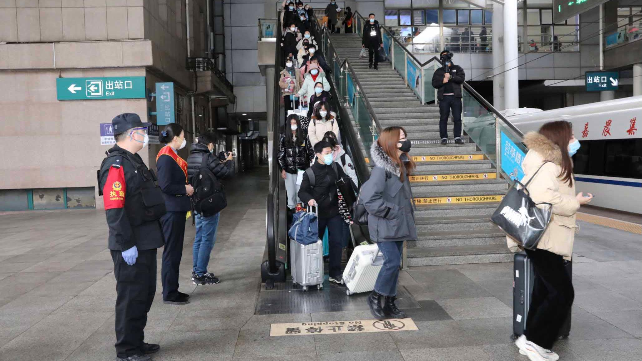 大连客运段按照防疫要求,定时对车厢进行,加强人身安全和疫情防控宣传,并安排年轻的大学生列车长全程做好服务工作。针对学生携带行李较多,列车乘务员及时将行李箱踩好止轮,进行固定,对外表、形状、颜色相近的箱子,用不同颜色便利贴进行区分提醒,防止学生拿错行李。为保障离连学生进站乘车和旅途安全,铁路公安方面增派警力全程护航。在车站,派出所民警岗位前置,全力做好客流引导;列车上,加派警力护乘,讲解乘车安全小常识,全程为广大学生提供安全服务和保障。(总台央视记者 黄璐 曹志宇)