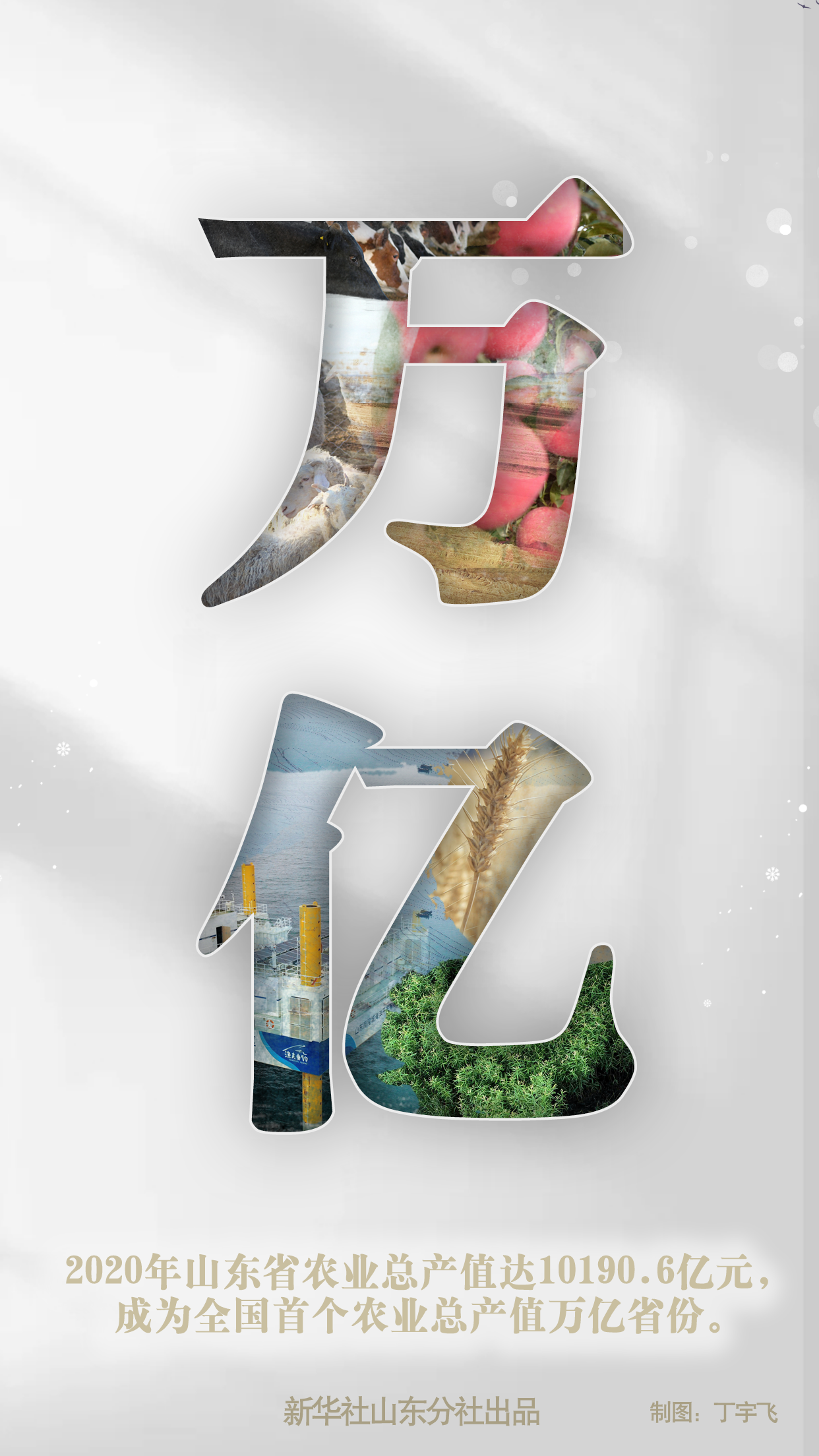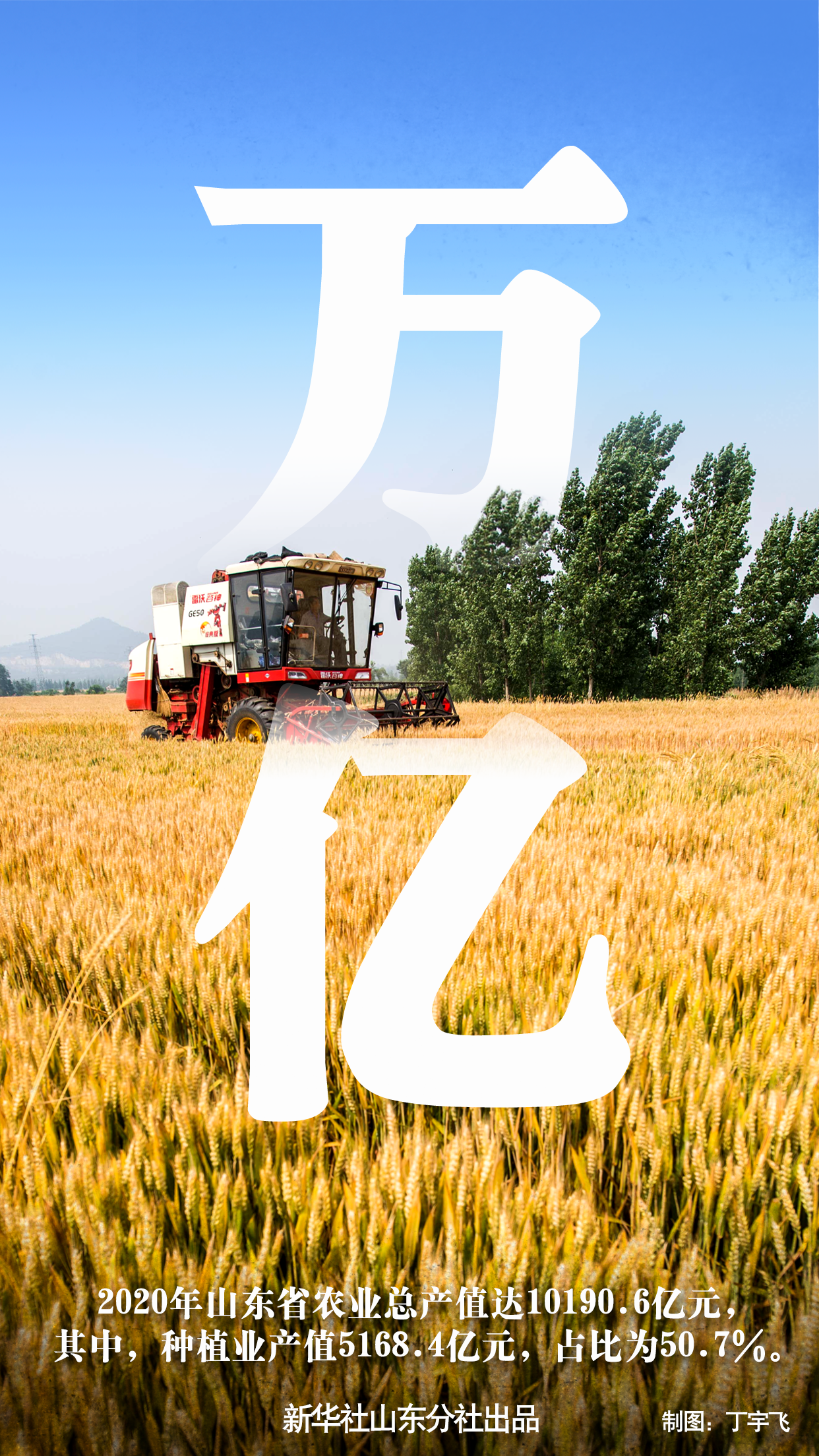 2020年山东农业总产值突破一万亿元,成为全国首个农业总产值过万亿元的省份。自1990年开始,山东农业总产值稳居全国第一。
