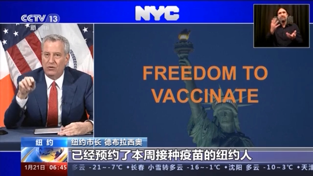 纽约市长 德布拉西奥:本周我们告知23000名已经预约了本周接种疫苗的纽约人,由于疫苗断供,他们无法如期接种了。