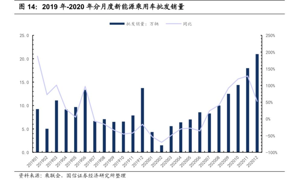 新时代证券预计,2021年,国内外新能源汽车市场共振,行业将处于高增长通道,预计2021年全球新能源车销量将达到约470万辆,将实现50%以上的增长。银河证券分析认为,随着动力电池企业研发技术的不断成熟,宁德时代的CTP技术和比亚迪的刀片电池技术的推广应用,均可在降低成本的同时提高电池系统能量密度,使磷酸铁锂电池兼具高安全性和低成本的特点,市场竞争力增强。