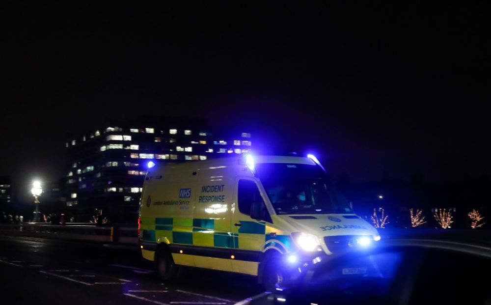 2020年12月31日,一辆救护车从英国伦敦的圣托马斯医院前驶过。(新华社记者韩岩摄)