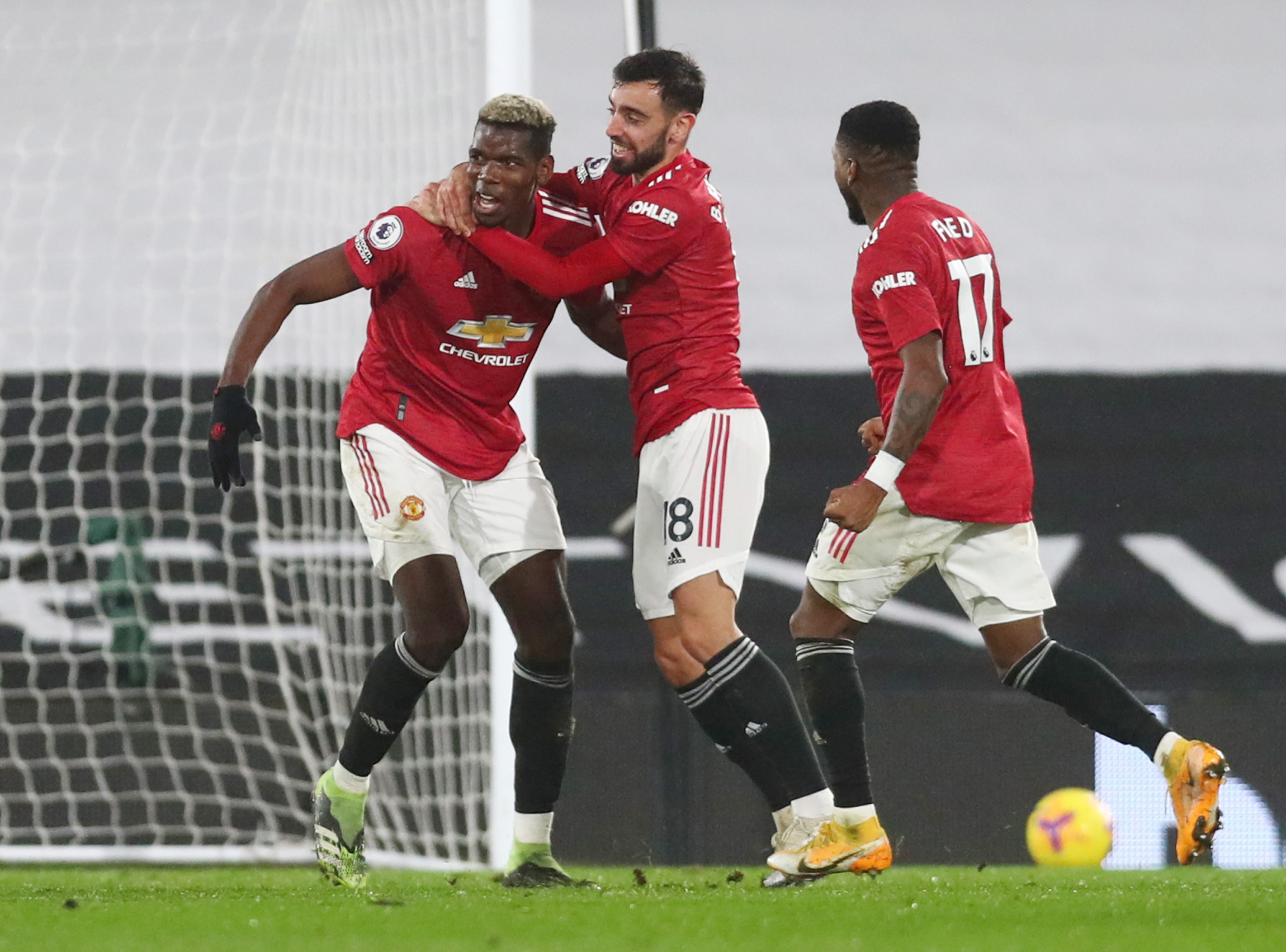 下半场,博格巴禁区外世界波助曼联2:1反超。尽管主队在比赛最后阶段发起凶猛反扑,但曼联最终在这个风雨交加的夜晚保住胜利,以19轮积40分的成绩领跑联赛。