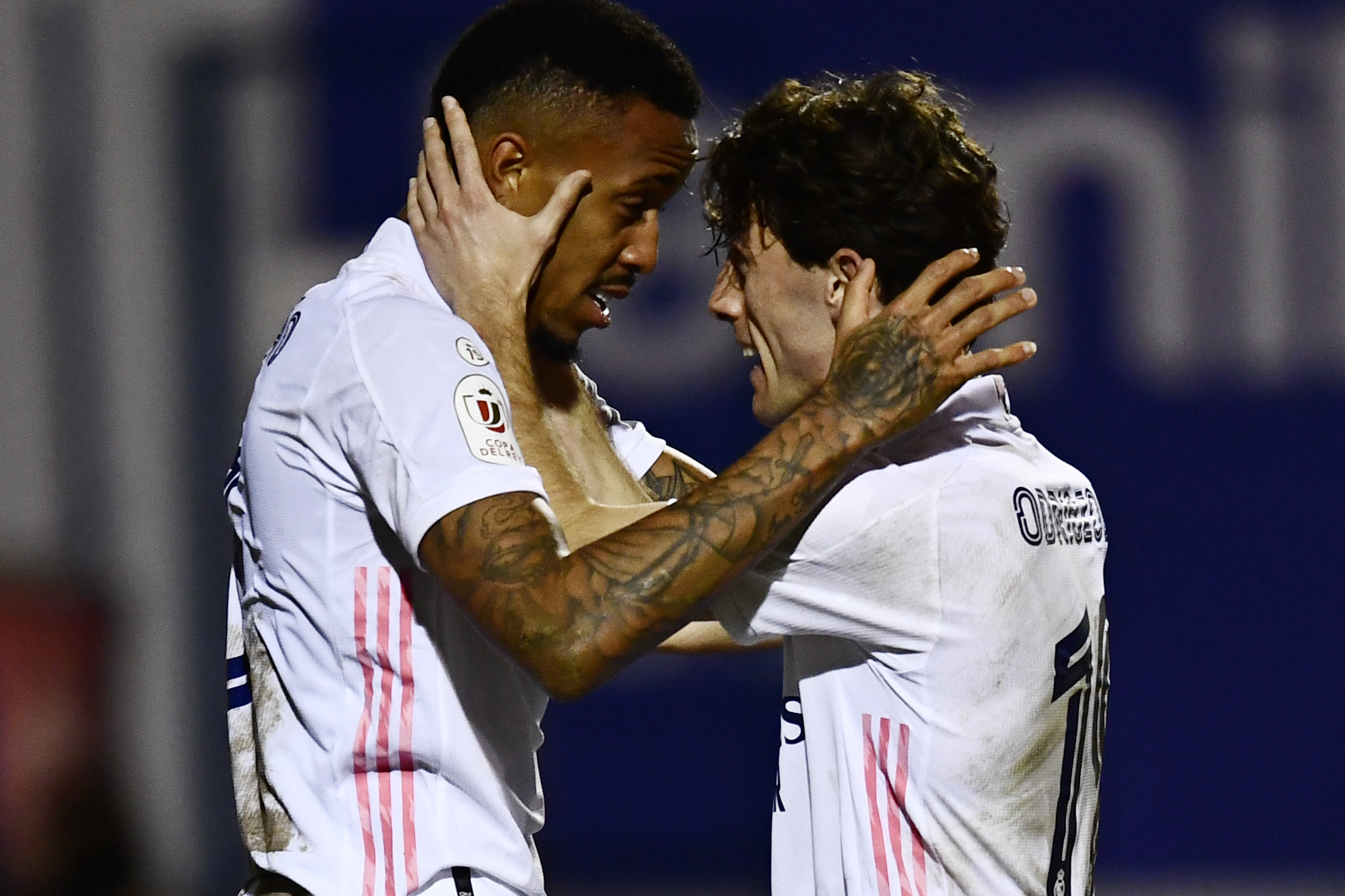1月20日,皇家马德里队球员米利唐(左)进球后与队友奥德里奥索拉庆祝。新华社/美联