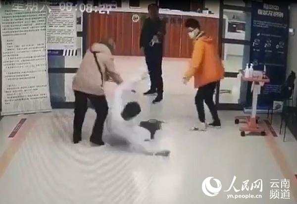 据悉,打人者为温某,其父亲在云南省第一人民医院住院。因疫情防控规定,医院要求病人家属需持陪护证方能进入病房陪护。