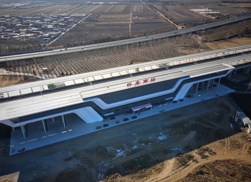 从北京朝阳站出发,之后将依次经过顺义西站、怀柔南站和密云站。被施工人员称作“京北三站”的它们,也是全线仅有的三座高架站台。