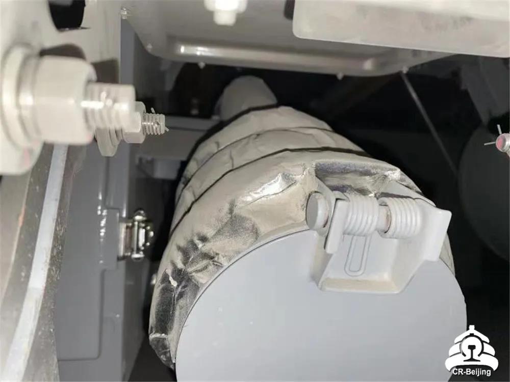 △列车上水管路由铜管优化为不易冻损的不锈钢管,管路外包裹上了防寒棉,配备辅助加热装置,避免了转向架附近区域低温薄弱点产生冻结。