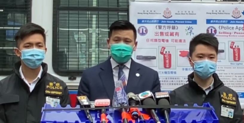 1月20日,深水埗警区展开代号“雷音行动”的执法工作,目的是打击流入市面的电击枪。深水埗警区助理指挥区郑俊杰说,2015年至2020年,全港有105人因涉及收藏及销售电击枪被捕。电击枪的类别五花八门,包括手携式、电筒形、铁莲花形、打火机形等;而在上一季,深水埗警区已3次截获打火机形电击枪。(总台记者 金东)