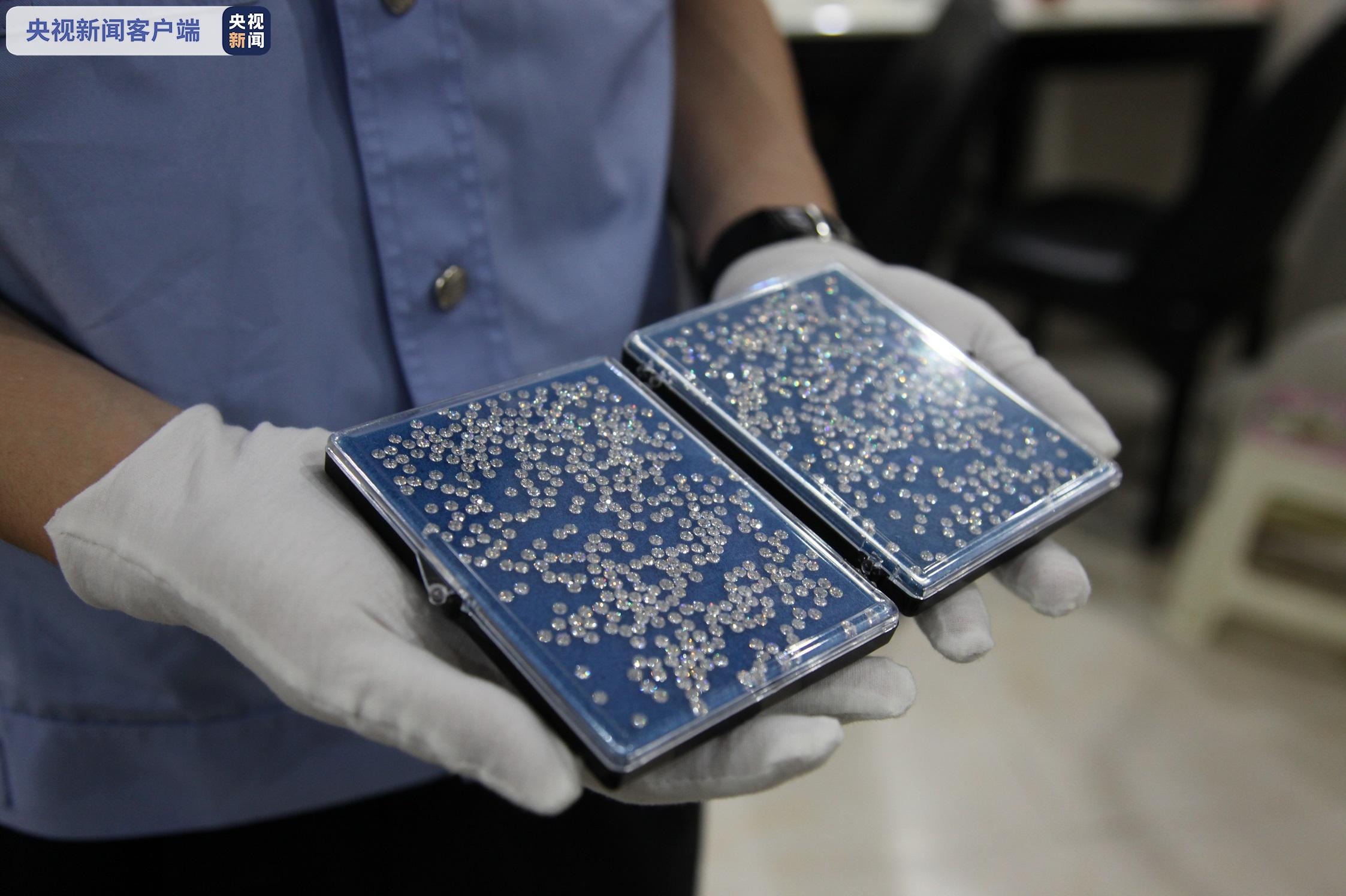△南京海关缉私人员清点查获的走私钻石 周红/摄