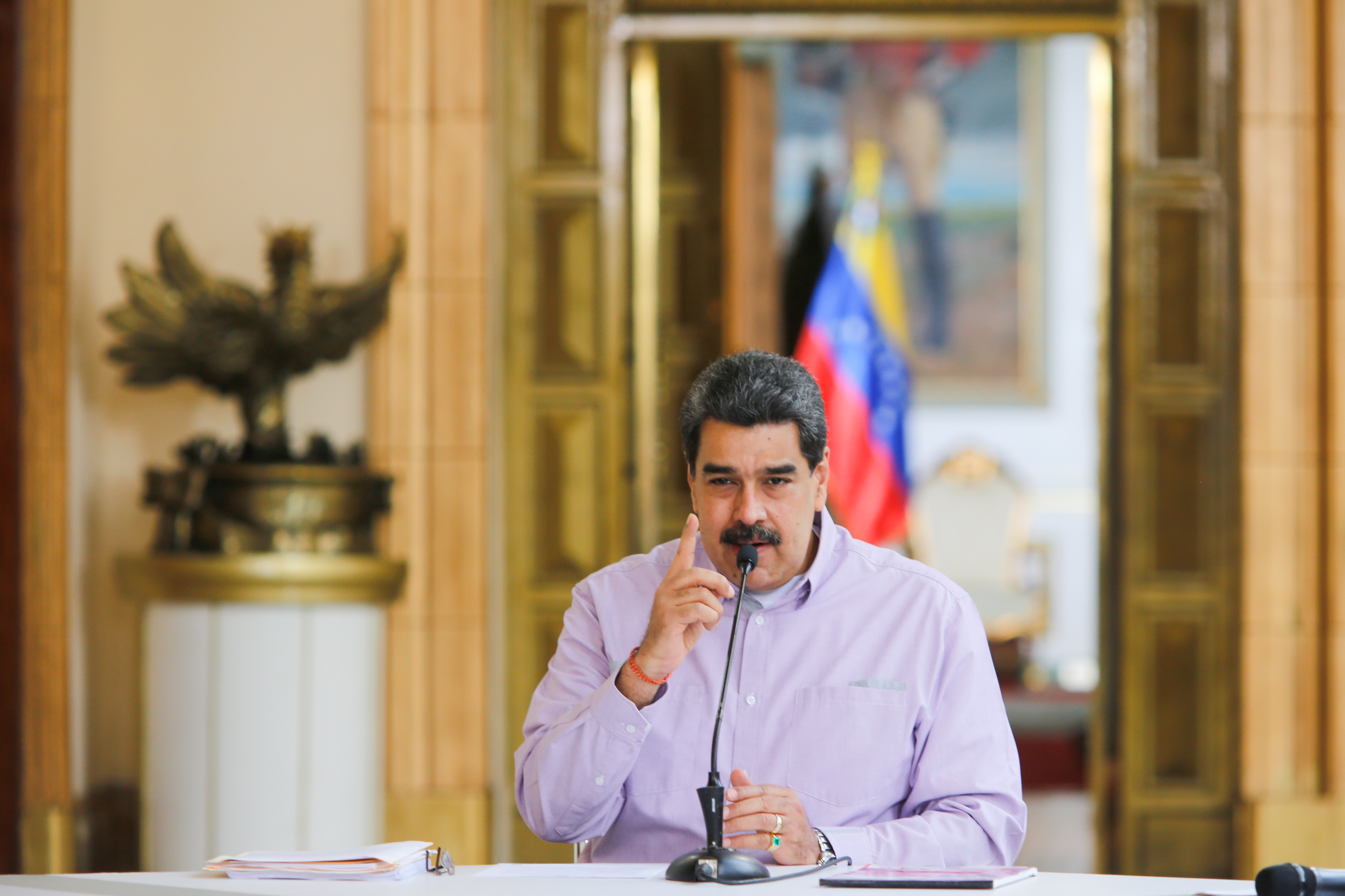 2020年4月8日,委内瑞拉总统马杜罗在总统府观花宫发表讲话。(新华社发,委内瑞拉总统府供图)