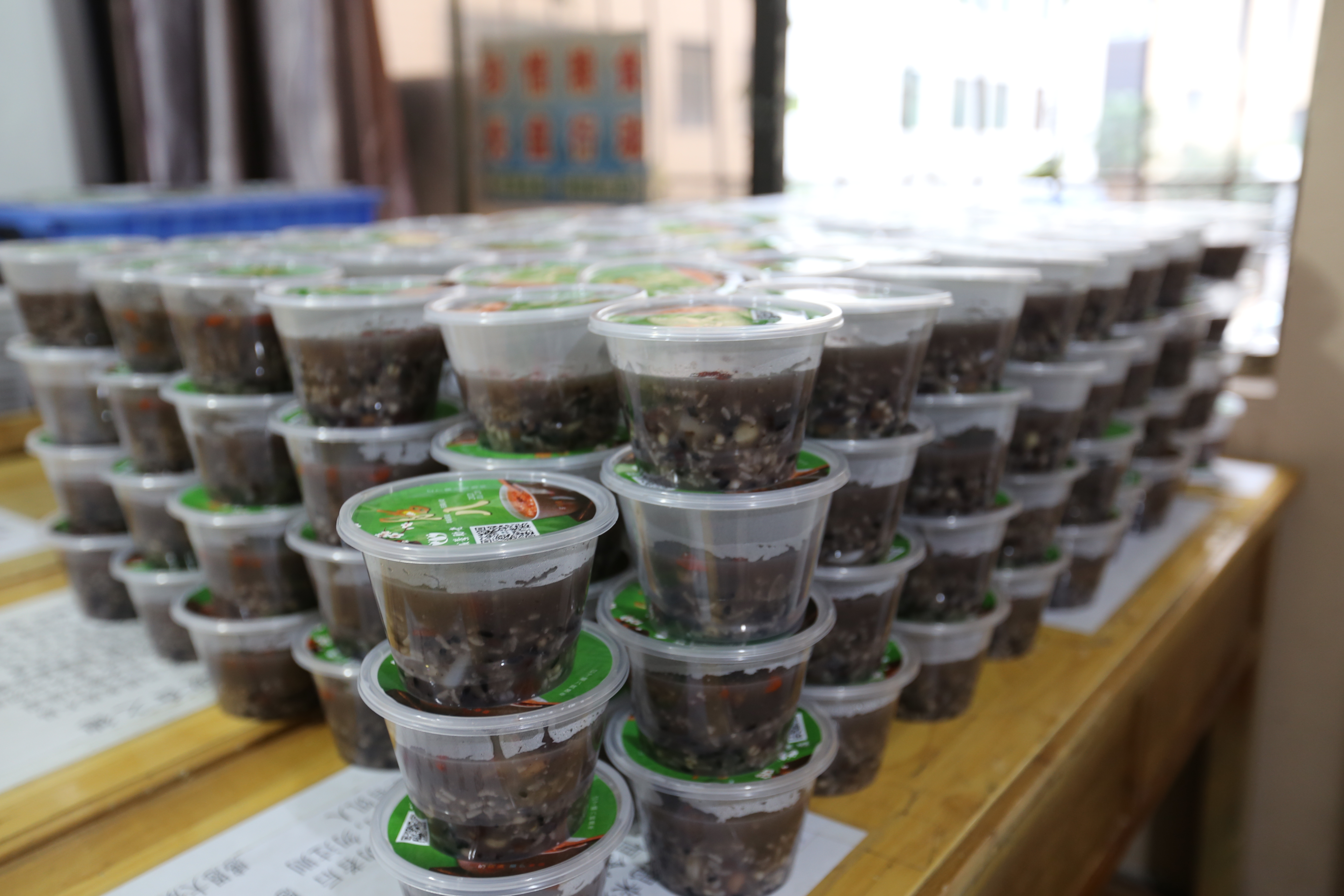 图为贵阳诚善助老慈善公益服务中心免费餐厅分发的腊八粥。(新华社发 朱杰 摄)