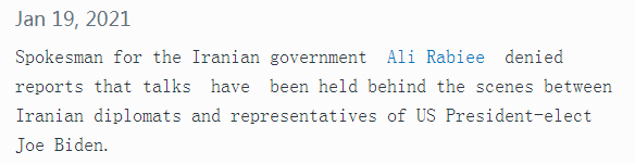 伊朗政府发言人拉比耶当地时间19日表示,伊方希望伊核协议继续存在,但“除非确信美国不加任何先决条件地恢复遵守协议,否则双方的接触将毫无意义”。针对此前以色列媒体有关美国新政府已为重返伊核协议与伊朗进行秘密对话的报道,拉比耶澄清说,伊方从未与拜登团队有过此类接触。