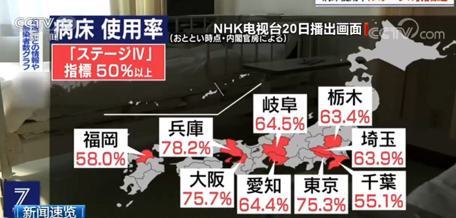 央视网消息:日本厚生劳动省数据显示,截至20日,日本新冠肺炎重症病患人数达1014人,刷新疫情暴发以来最高纪录,东京都又有两名居家隔离新冠患者死亡。据NHK电视台统计,在东京都、大阪府等11个日本政府已宣布进入紧急状态的地区中,病床使用率、重症监护病床使用率、新冠病毒检测结果呈阳性的比例、新增确诊患者中感染途径不明的比例等多项指标依然居高不下。