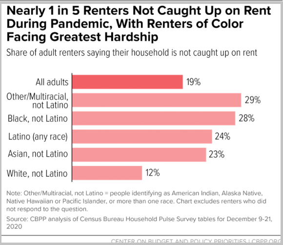 (△拖欠房租的人群中,少数族裔无力支付房租的情况更严重:非裔占比28% ,拉美裔24%,亚裔23%。)