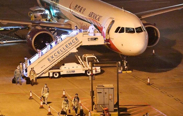 记者22日从澳门特区政府新闻局获悉,两班载有109名澳门居民的澳门航空航班21日晚从日本东京抵达澳门,其中1人的快速检测样本结果呈阳性,连同机上附近座位人士,共有11名居民立即被送往路环高顶公共卫生临床中心等候常规核酸检测结果。