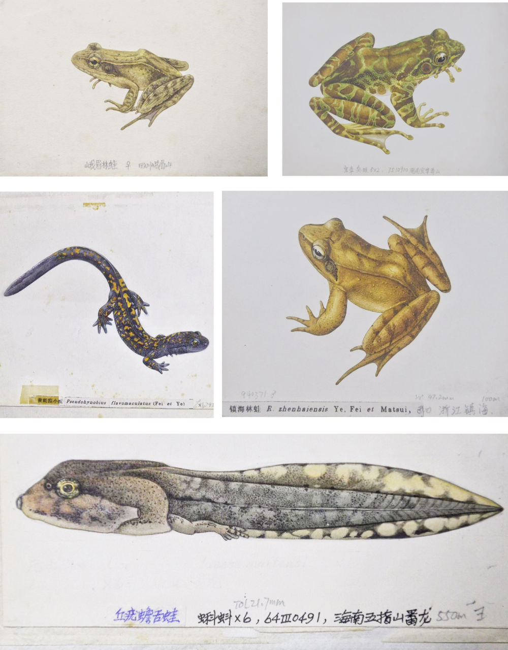 ↑费梁、叶昌媛发现的部分新种手绘图。