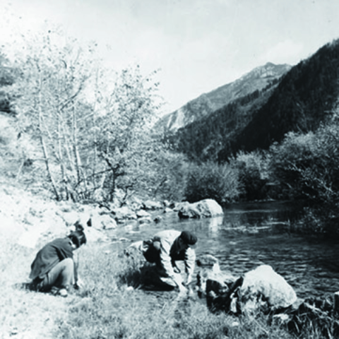 ↑ 费梁与叶昌媛在野外工作的身影