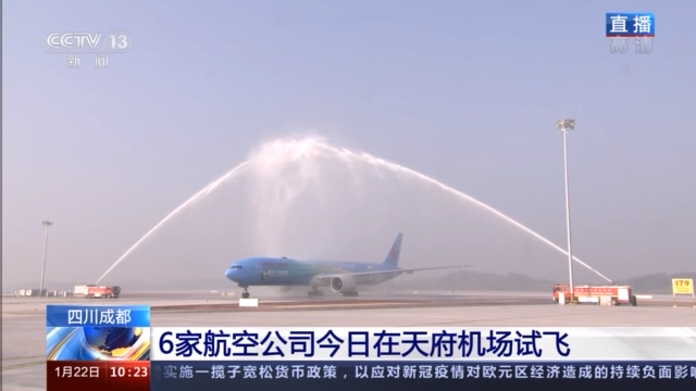 22日上午,6家航空公司的6架民航主力机型将陆续飞抵成都天府国际机场,机场试飞工作全面开启。总台央视记者蒋林在现场为您带来最新消息。